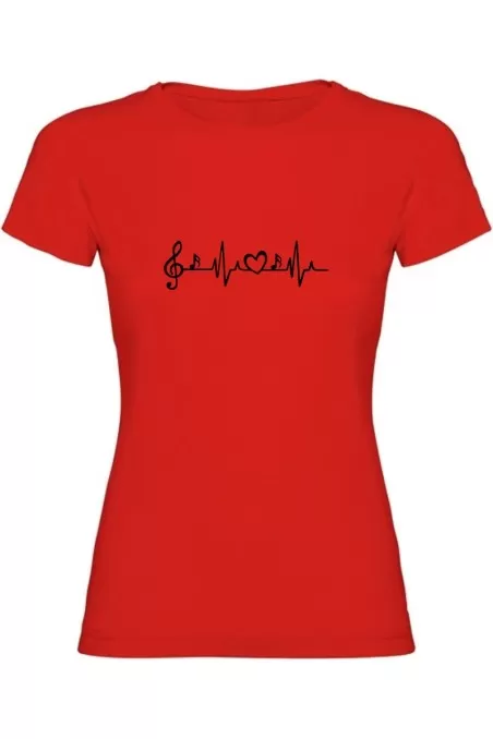 Toto dámské tričko spojuje styl, jemnost a lásku k hudbě v jednom výrazném designu. Potisk představuje křivku srdečního tepu, která přechází do notové osnovy, což symbolizuje, že hudba je životní rytmus.