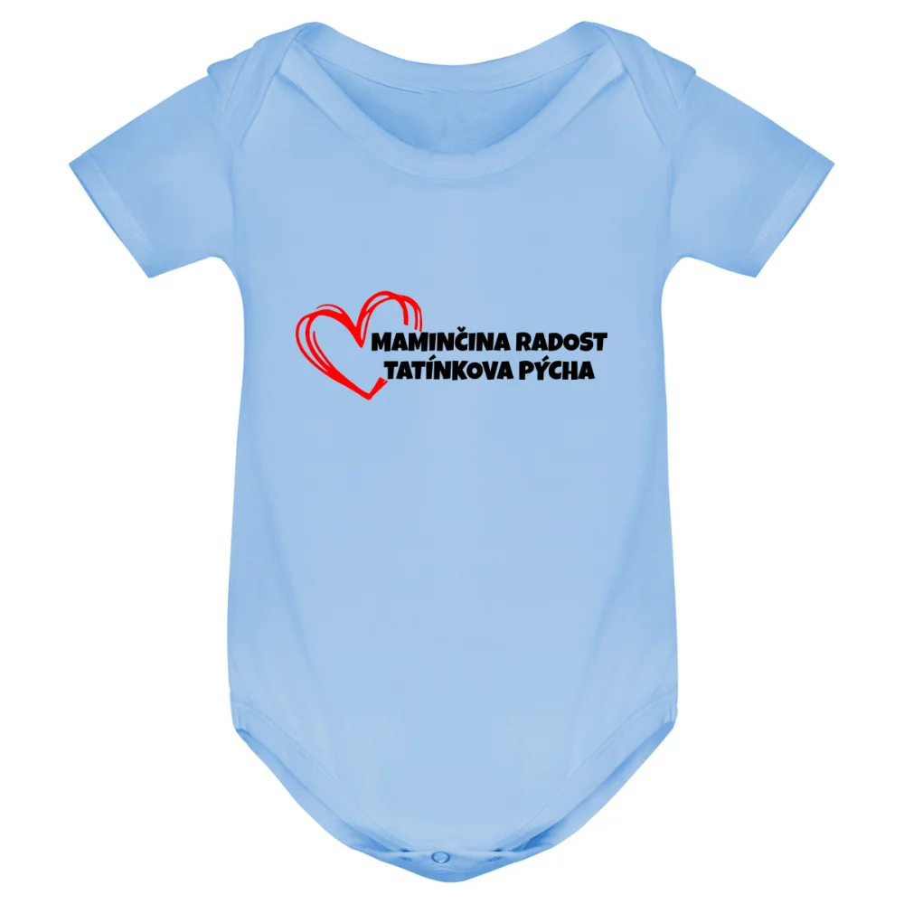 Kojenecké body s potiskem „Maminčina radost, tatínkova pýcha“ je roztomilý kousek, který vyjádří lásku celé rodiny. Ideální dárek pro novopečené rodiče i jako originální outfit pro miminko. Kvalitní DTF potisk vydrží časté praní a zůstává krásně sytý.