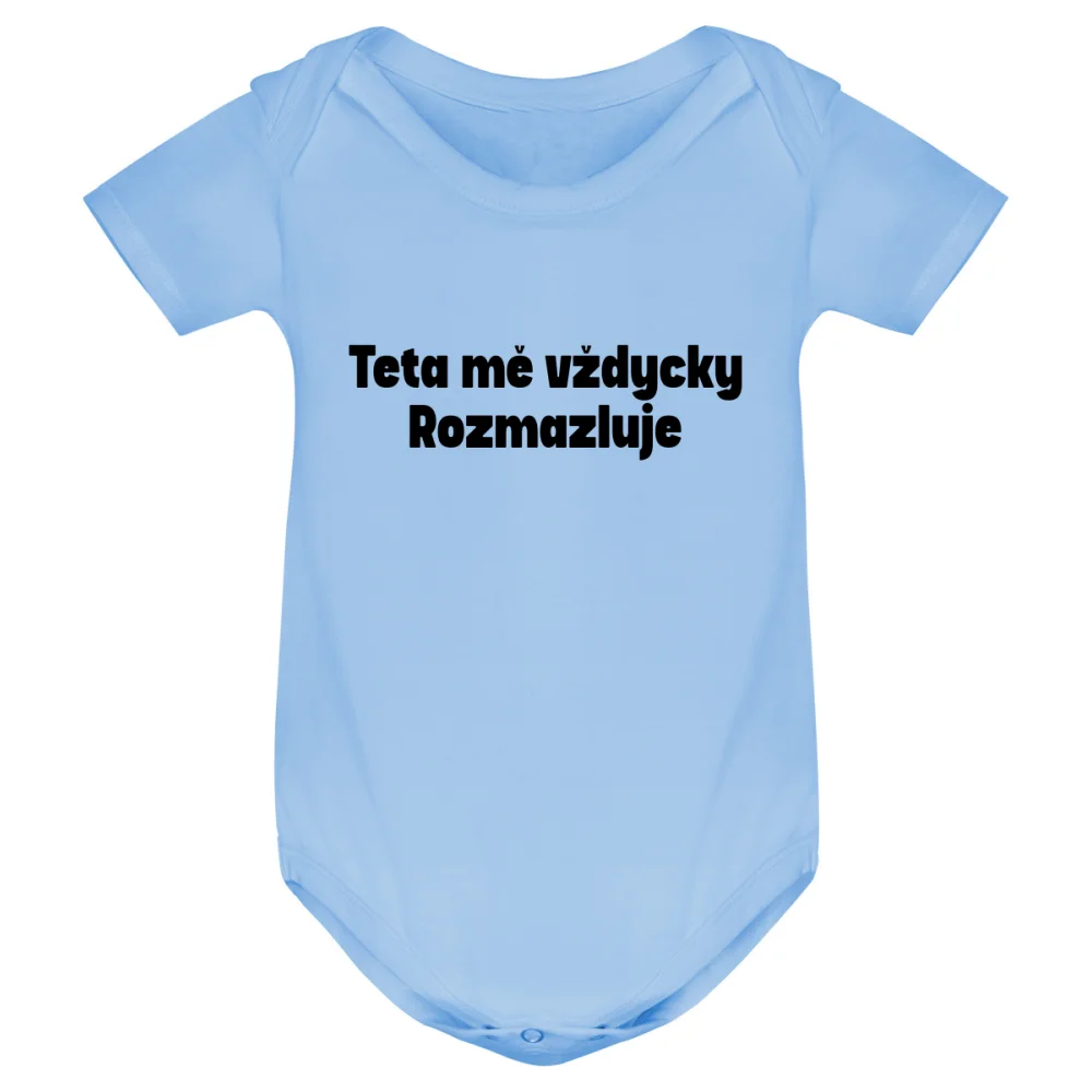 Kojenecké body s potiskem „Teta mě vždycky rozmazluje“ je originální kousek, který ocení všechny pyšné tety. Skvěle se hodí jako dárek od tety svému malému pokladu a zaručeně pobaví celou rodinu. Kvalitní DTF potisk vydrží časté praní a zachová si barvy i tvar.