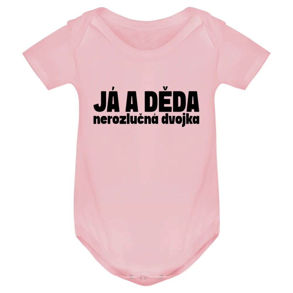 Kojenecké body s potiskem „JÁ A DĚDA, NEROZLUČNÁ DVOJKA“ je roztomilý a hravý kousek, který podtrhne jedinečné pouto mezi dědečkem a jeho vnoučetem. Perfektní jako dárek od dědy, který chce vyjádřit svou lásku a speciální vztah k malému miminku. Potisk je vyroben kvalitní DTF technologií, takže vydrží časté praní a zůstane dlouho krásný.