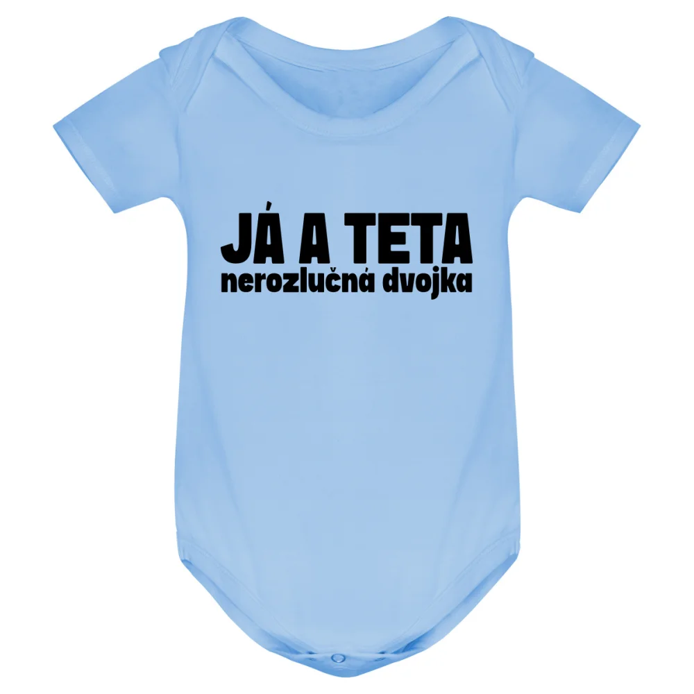 Kojenecké body s potiskem „JÁ A TETA, NEROZLUČNÁ DVOJKA“ je roztomilý a hravý kousek, který podtrhne jedinečné pouto mezi tetou a jejím malým vnoučetem. Perfektní jako dárek od tety, která chce vyjádřit svou lásku a speciální vztah k miminku. Potisk je vyroben kvalitní DTF technologií, takže vydrží časté praní a zůstane dlouho krásný.