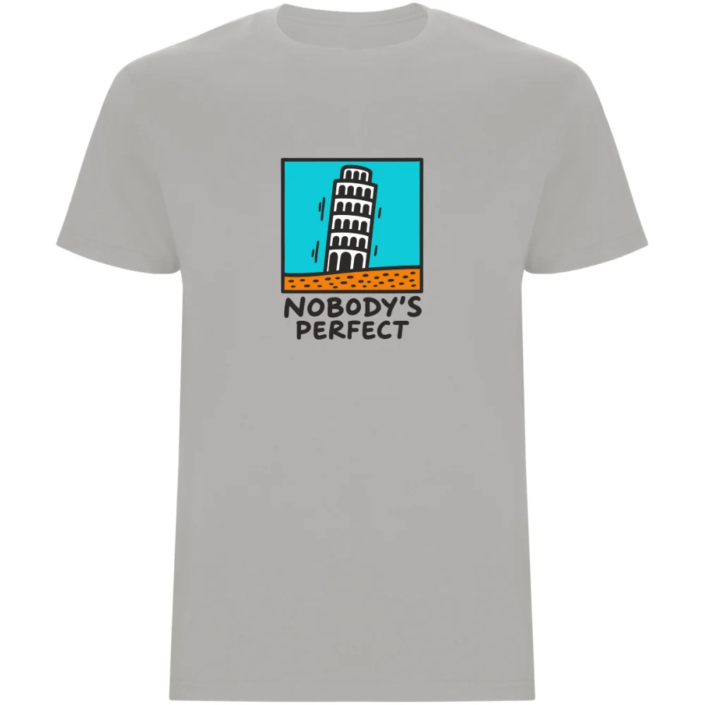 Není třeba být dokonalý – stačí mít styl! Pánské tričko NOBODY'S PERFECT s originálním potiskem šikmé věže v sobě spojuje humor a jednoduchý design. Ideální volba pro ty, kteří se neberou moc vážně, ale chtějí vypadat skvěle.