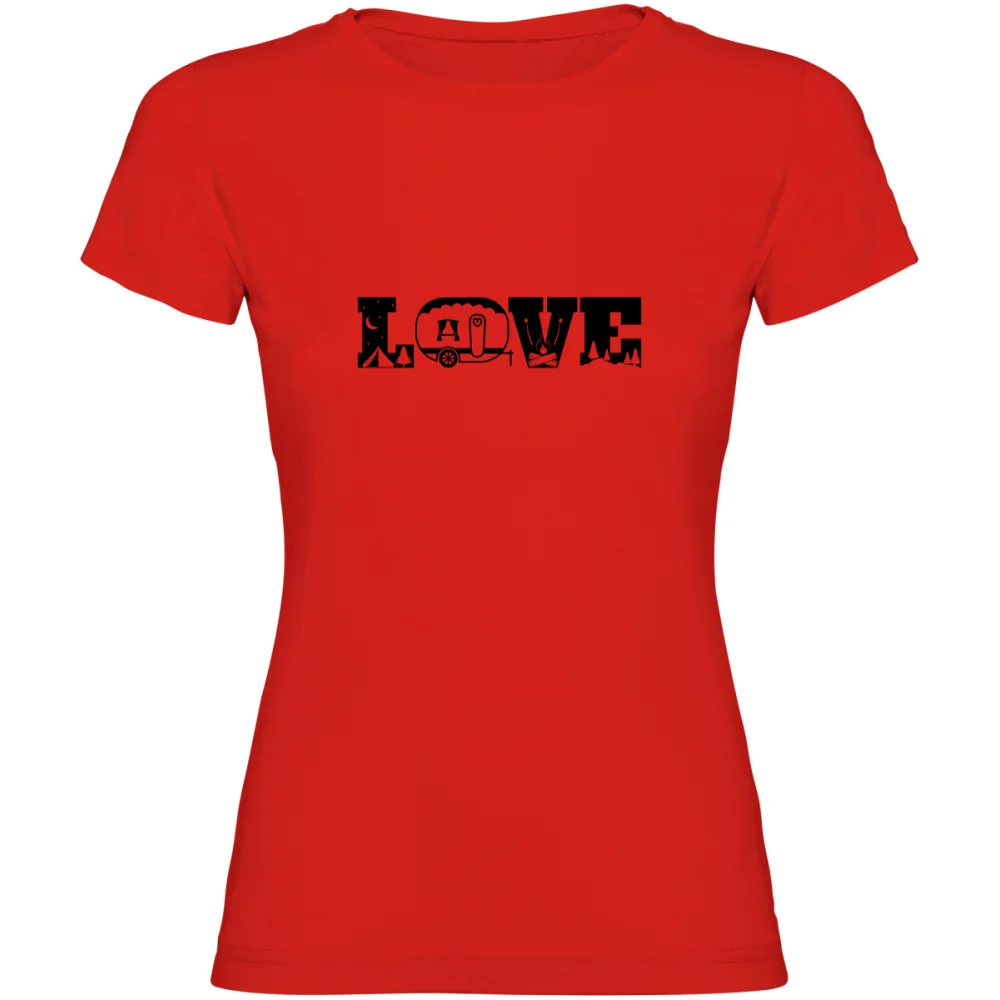 Dámské tričko "Camping Love" zaujme originálním nápisem, v němž jsou písmena tvořena nebo doplněna motivy jako stan, hory, oheň nebo lucerna. Design, který propojuje styl a lásku ke kempování.