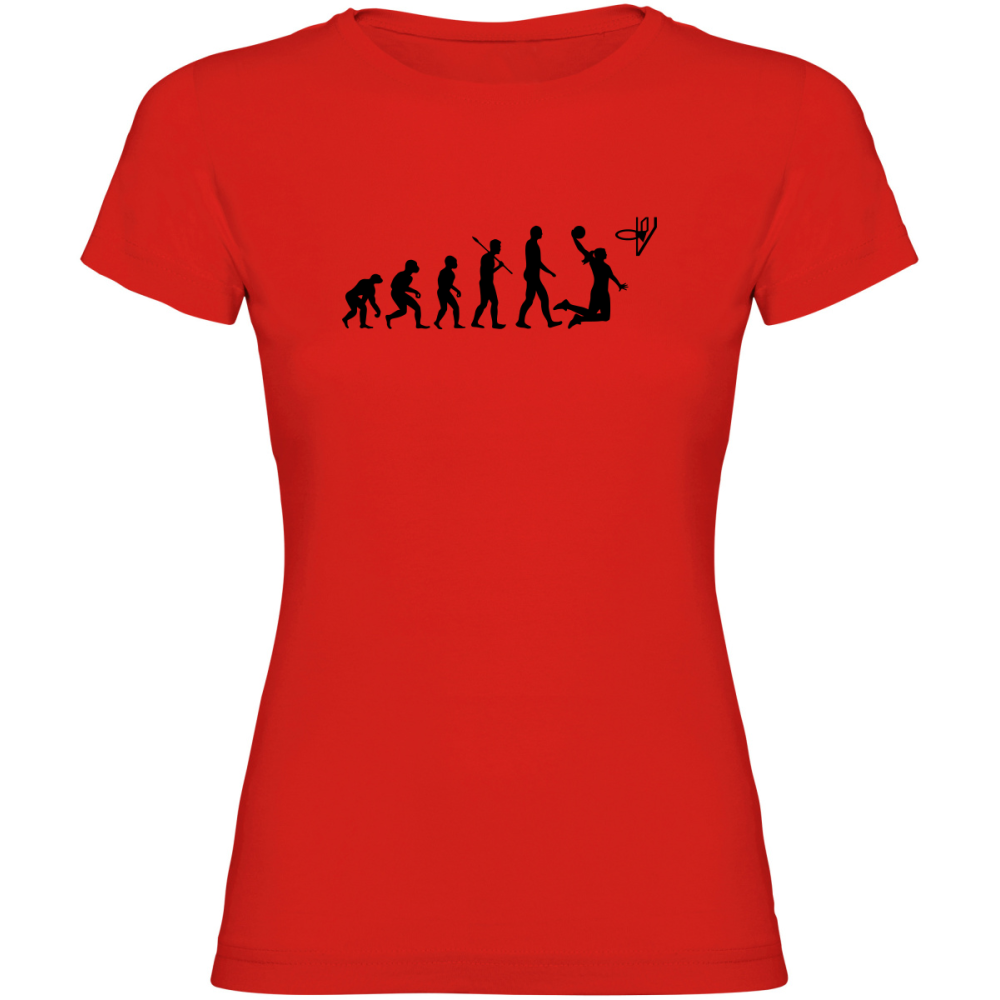 Dámské tričko s motivem evoluce basketbalistky stylově zobrazuje vývoj od prvních kroků lidstva až po dynamickou hráčku uprostřed hry.