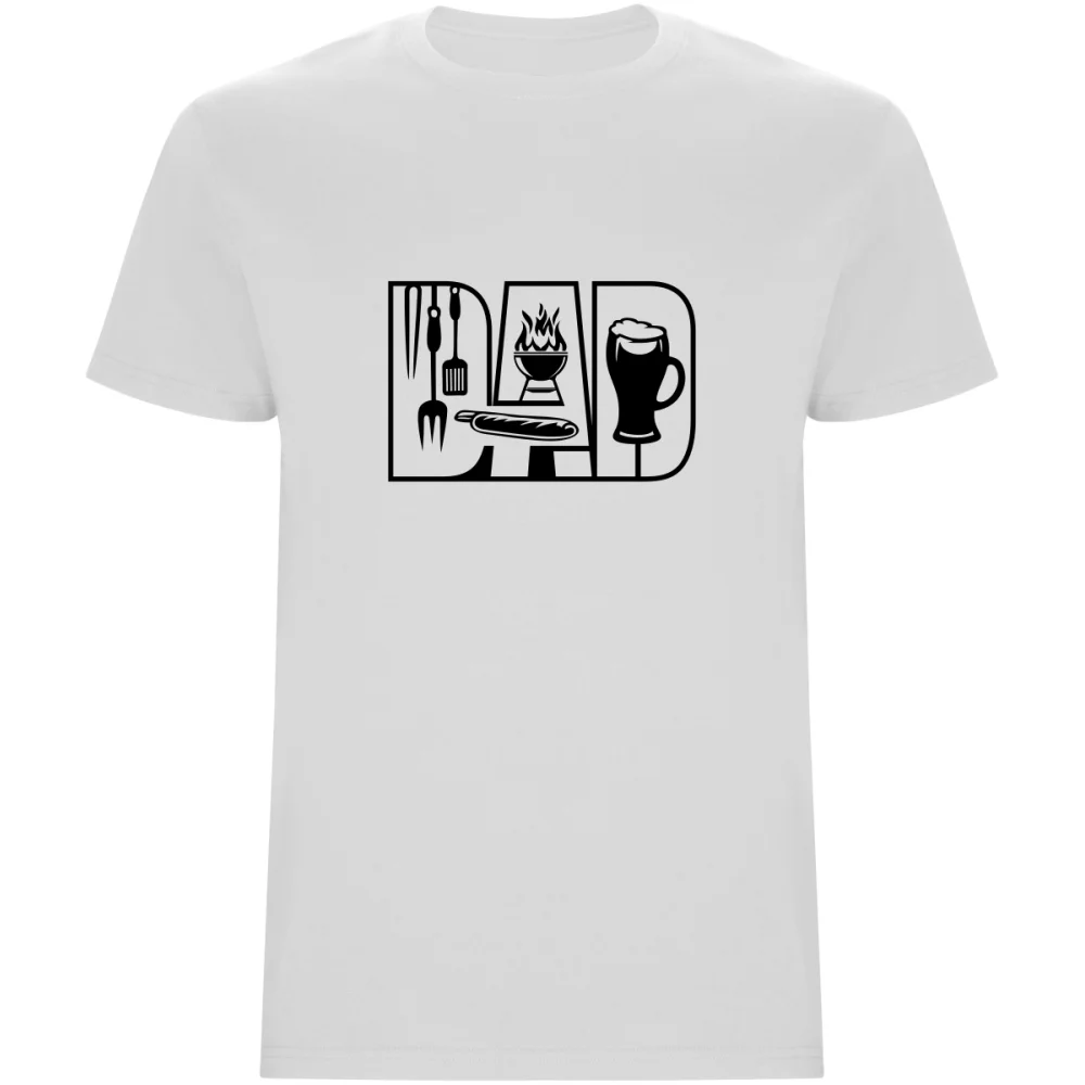 Pánské tričko s potiskem „DAD“ a grilovacími motivy je ideální kousek pro každého tatínka, který rád vládne u grilu.