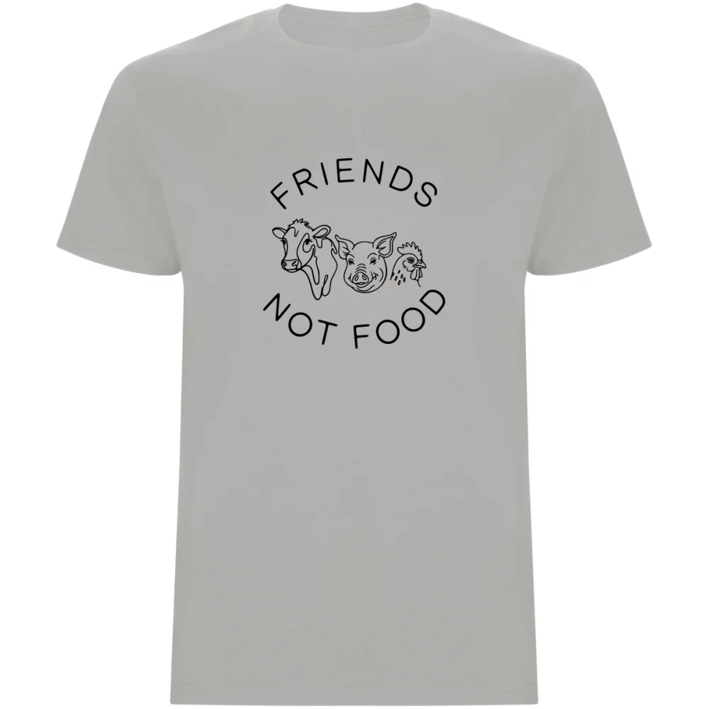 Pánské tričko s potiskem „FRIENDS NOT FOOD“ je víc než jen oblečení – je to jasné vyjádření lásky ke zvířatům a respektu k životu.