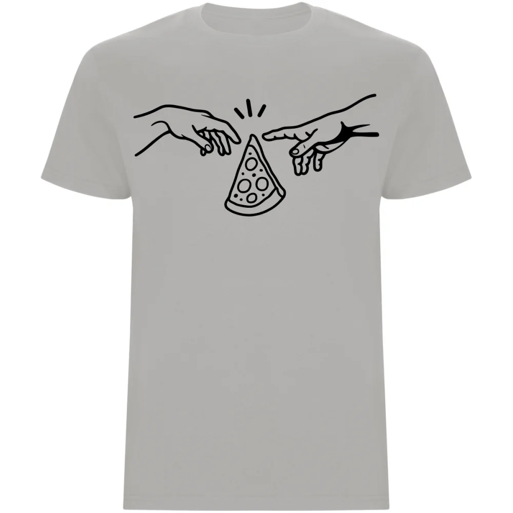 Jste milovníkem umění a pizzy? Toto tričko s vtipnou parodií na Michelangelovo slavné dílo "Stvoření Adama" je pro vás to pravé! Místo Adama a Boha se zde ruce natahují po božském kousku pizzy. Díky kvalitnímu DTF potisku je motiv odolný a má dlouhou životnost. Univerzální střih trička skvěle sedí většině postav. Je to ideální a originální dárek pro každého gurmána s humorem. Tričko je potištěno v České republice.