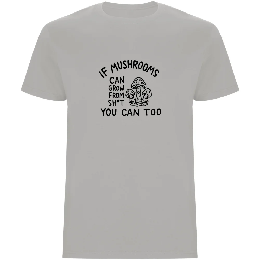 Potřebujete motivační nakopnutí, které bere život s humorem? Toto tričko s vtipným potiskem a sloganem IF MUSHROOMS CAN GROW FROM SH*T YOU CAN TOO je pro každého, kdo se nevzdává. Kvalitní DTF potisk zajišťuje, že barvy zůstanou syté a motiv odolný. Díky univerzálnímu střihu pohodlně sedí většině postav. Je to skvělý dárek pro kamaráda nebo jako vtipná připomínka, že všechno se dá překonat. Tričko je potištěno v České republice.