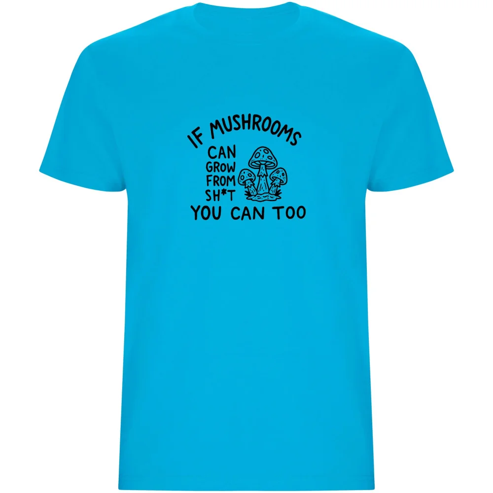 Potřebujete motivační nakopnutí, které bere život s humorem? Toto tričko s vtipným potiskem a sloganem IF MUSHROOMS CAN GROW FROM SH*T YOU CAN TOO je pro každého, kdo se nevzdává. Kvalitní DTF potisk zajišťuje, že barvy zůstanou syté a motiv odolný. Díky univerzálnímu střihu pohodlně sedí většině postav. Je to skvělý dárek pro kamaráda nebo jako vtipná připomínka, že všechno se dá překonat. Tričko je potištěno v České republice.