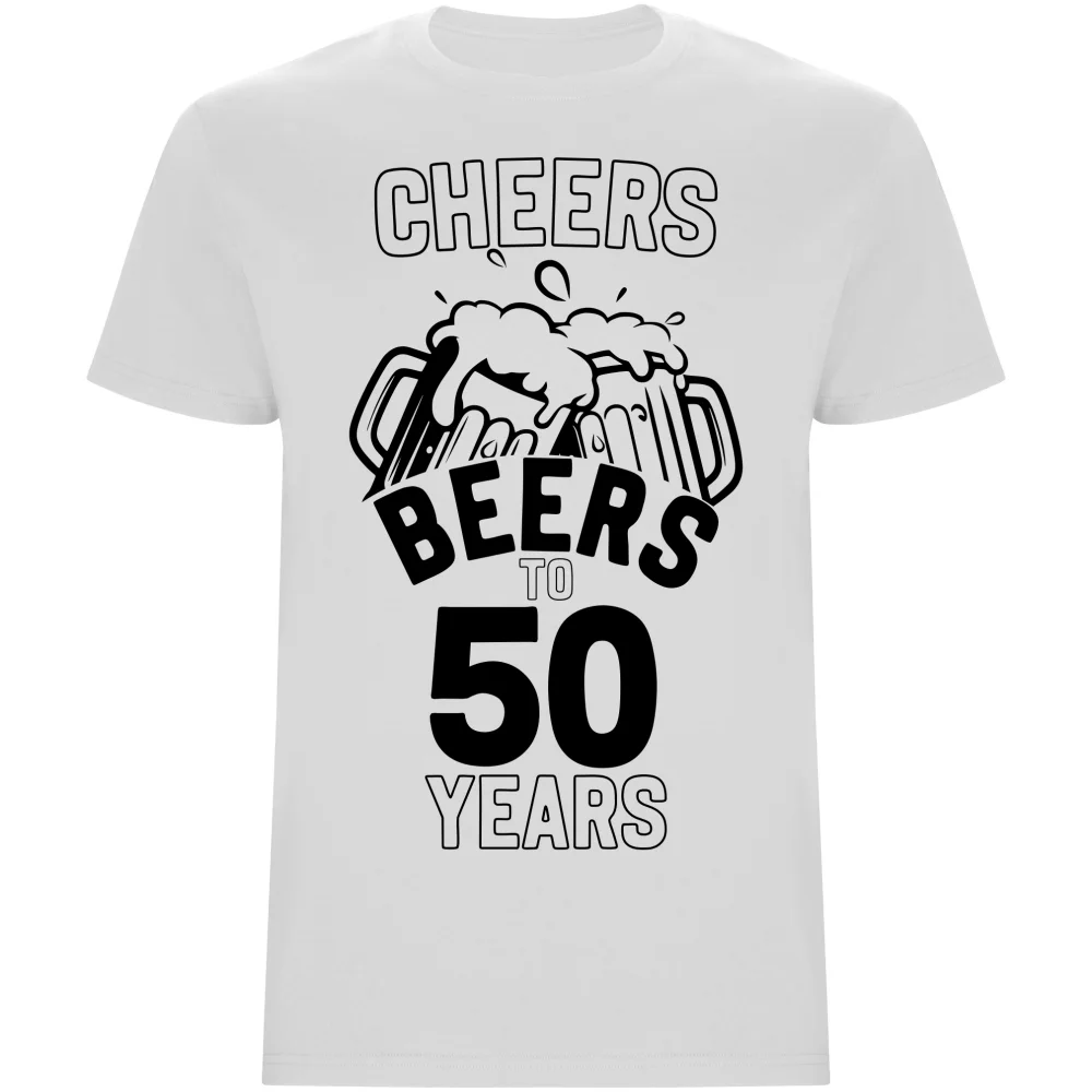Pánské tričko s potiskem „Cheers Beers to 50 Years“ je perfektní volbou pro oslavu kulatých narozenin. Vyrobené z kvalitní bavlny poskytuje pohodlí a příjemný pocit při nošení. Odolný potisk vydrží i časté praní, takže tričko zůstane dlouho v perfektním stavu. Skvělý tip na originální dárek pro kamaráda, partnera nebo kolegu, který slaví 50 let.