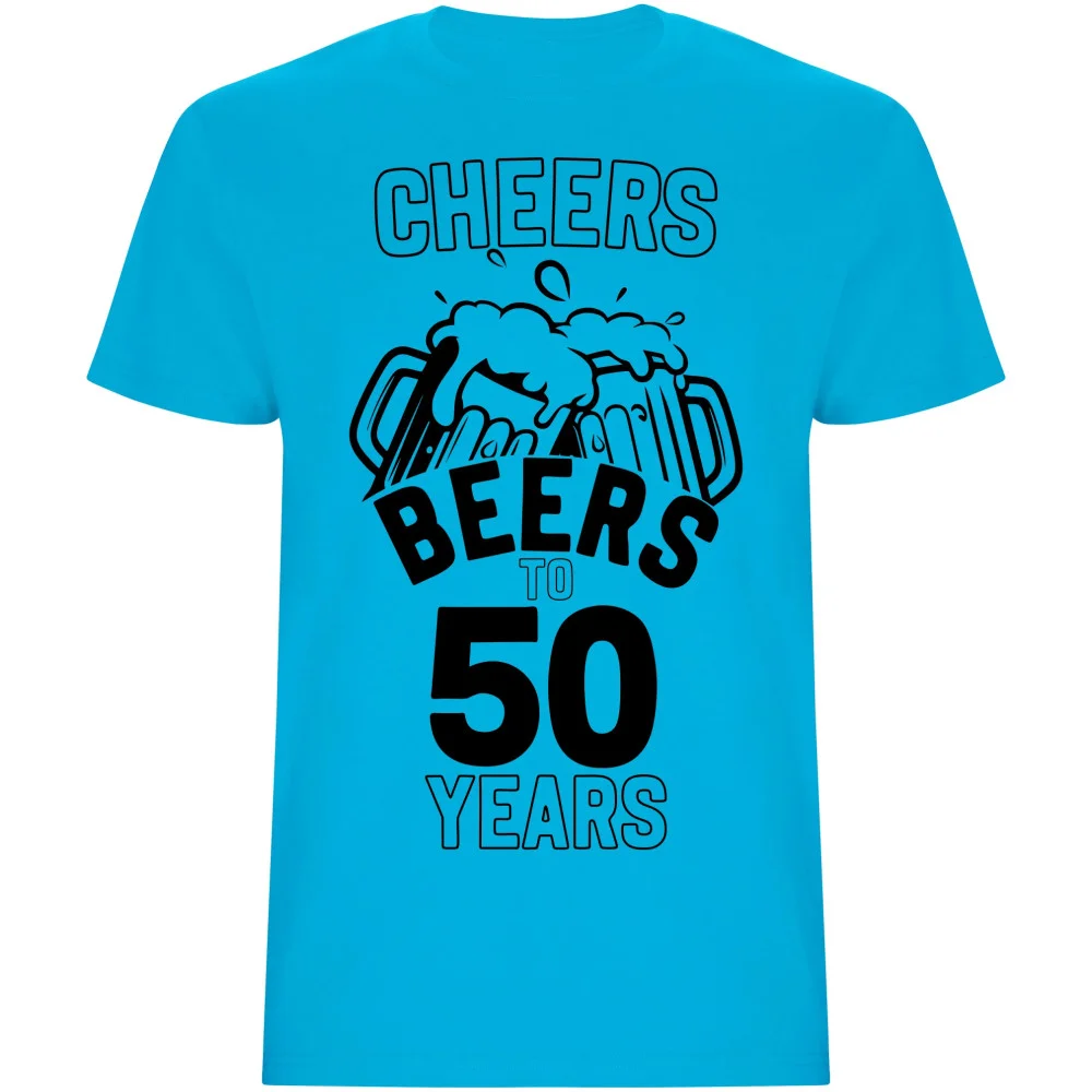 Pánské tričko s potiskem „Cheers Beers to 50 Years“ je perfektní volbou pro oslavu kulatých narozenin. Vyrobené z kvalitní bavlny poskytuje pohodlí a příjemný pocit při nošení. Odolný potisk vydrží i časté praní, takže tričko zůstane dlouho v perfektním stavu. Skvělý tip na originální dárek pro kamaráda, partnera nebo kolegu, který slaví 50 let.