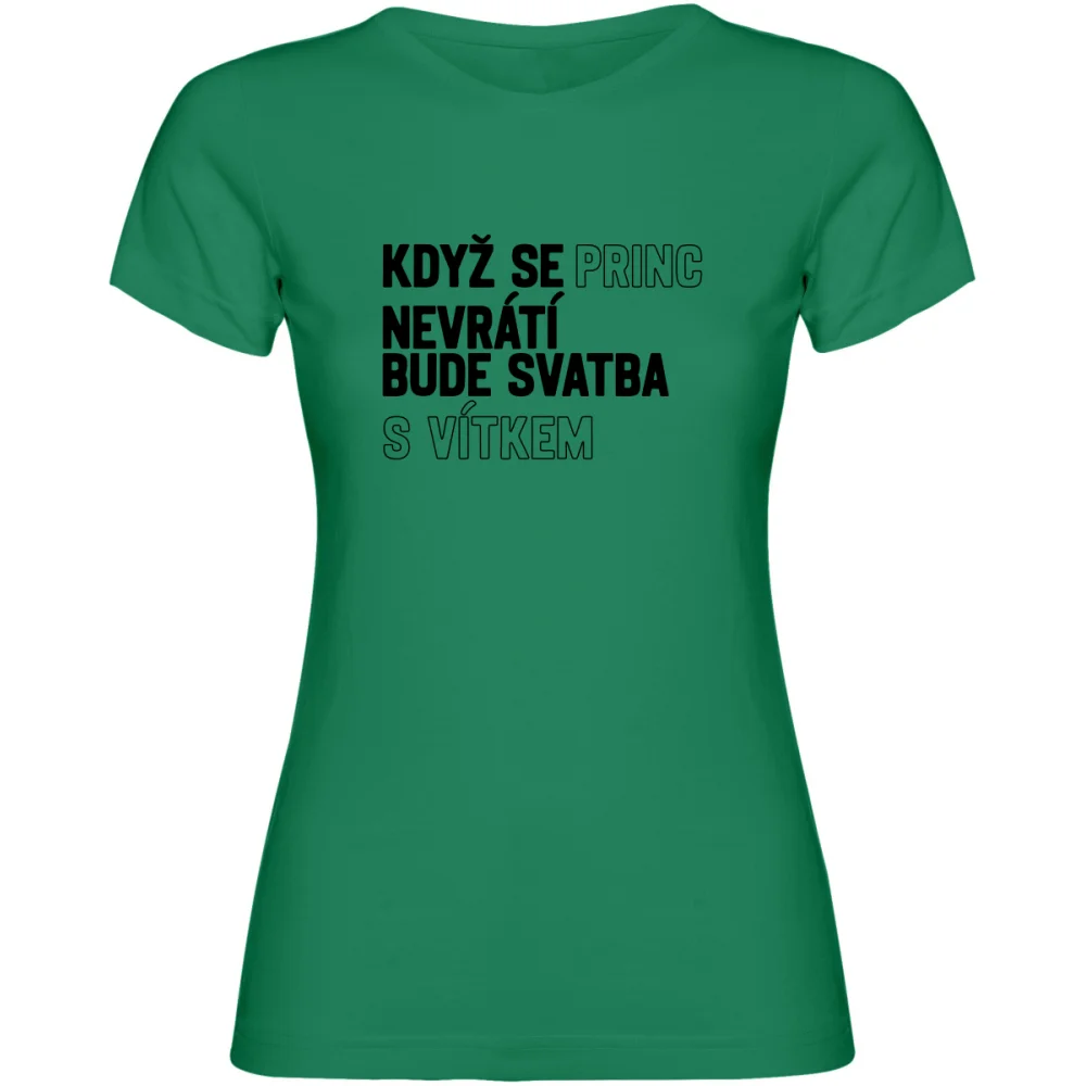 Nezapomeňte vlastní text uložit stisknutím tlačítka ULOŽIT VLASTNÍ TEXTOriginální tričko s nápisem „Když se princ nevrátí, bude svatba s (vlastní jméno)“ pobaví na první pohled. Skvělý vtipný kousek na rozlučku se svobodou, který vyjádří lehce ironický nadhled i skvělou náladu celé party. Možnost doplnit vlastní jméno dělá z trička osobní suvenýr, na který se nezapomíná. Pohodlný střih, kvalitní potisk, skvělá zábava!