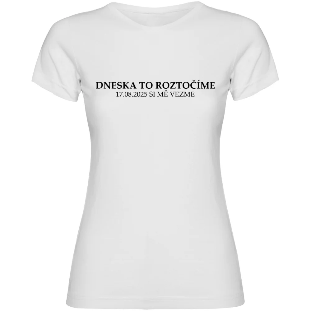 Nezapomeňte vlastní text uložit stisknutím tlačítka ULOŽIT VLASTNÍ TEXTDámské tričko s nápisem „Dneska to roztočíme“ a vlastním datem svatby je přesně to, co potřebuješ na svoji rozlučku se svobodou! Pohodlný střih, kvalitní bavlna a originální potisk, který vydrží i ty nejdivočejší večírky. Skvělý způsob, jak oslavit poslední dny svobody stylově a s grácií. Ať už jdeš na párty nebo jen tak s kamarádkami, tohle tričko řekne vše za tebe.