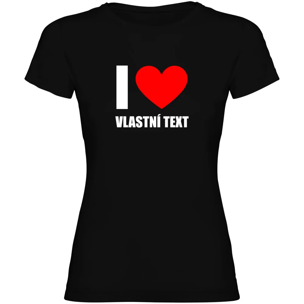Nezapomeňte vlastní text uložit stisknutím tlačítka ULOŽIT VLASTNÍ TEXTStylové dámské tričko s nápisem I LOVE a možností doplnit vlastní text je perfektním dárkem nebo osobním kouskem pro vyjádření emocí. Kvalitní potisk z polyuretanové fólie odolá praní a tričko si dlouho uchová svůj skvělý vzhled. Pohodlný střih a příjemný materiál zaručují komfortní nošení doma, venku i při volnočasových aktivitách.