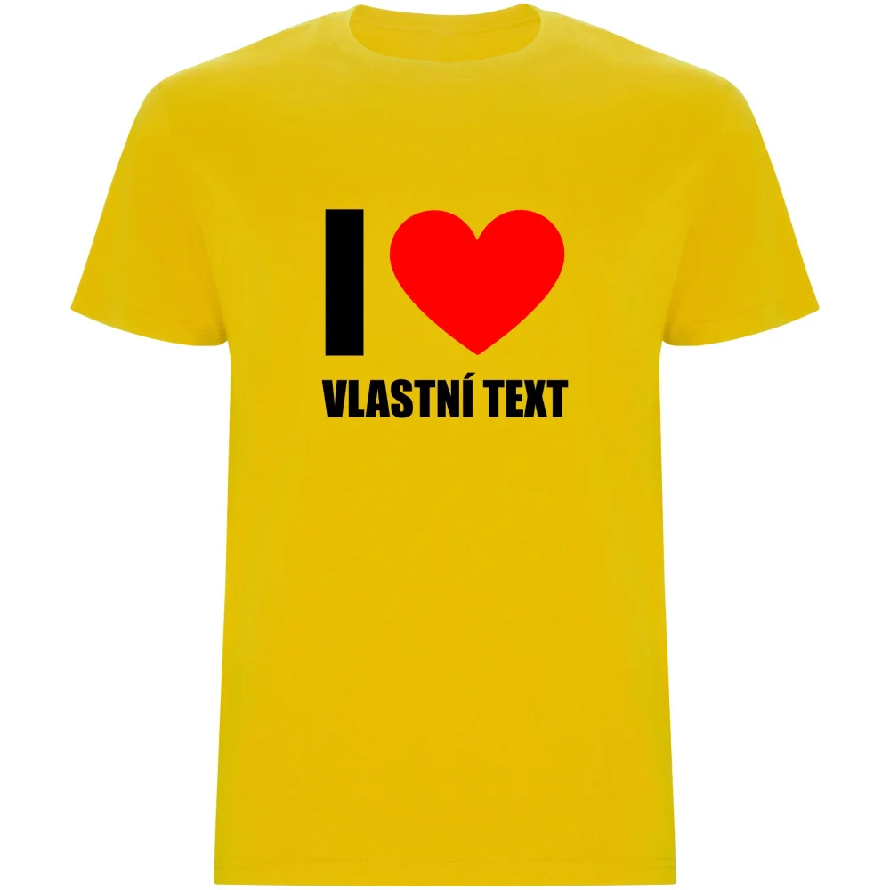Nezapomeňte vlastní text uložit stisknutím tlačítka ULOŽIT VLASTNÍ TEXTStylové pánské tričko s nápisem I LOVE a možností doplnit vlastní text je perfektním způsobem, jak vyjádřit své city nebo osobní vzkaz. Kvalitní potisk z polyuretanové fólie odolá častému praní a tričko si dlouho uchová skvělý vzhled. Pohodlný střih zajišťuje komfortní nošení doma, venku i při volnočasových aktivitách – ideální dárek nebo osobní kousek do šatníku.