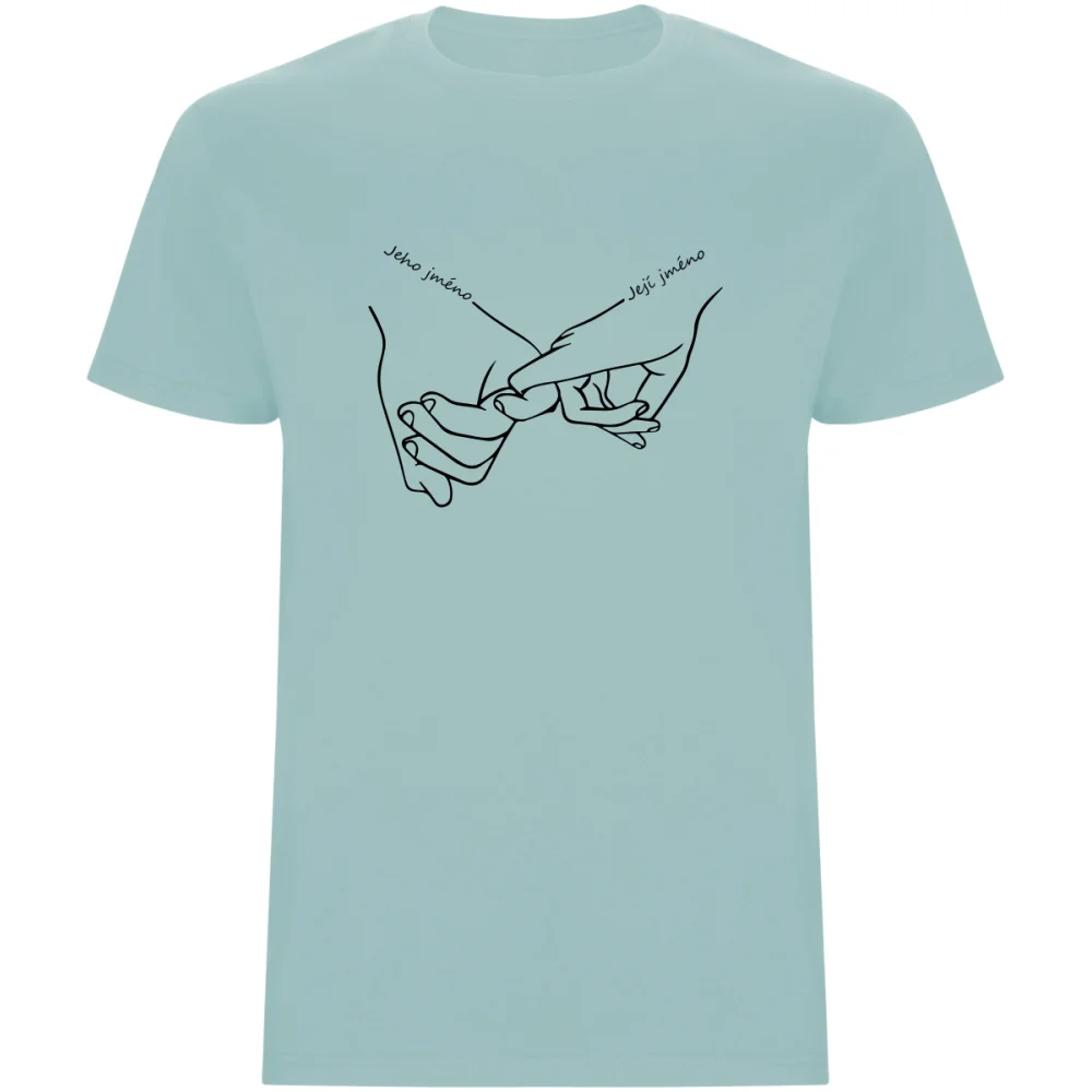 Nezapomeňte vlastní text uložit stisknutím tlačítka ULOŽIT VLASTNÍ TEXTVyjádřete svou lásku a jedinečné pouto s tímto romantickým tričkem, které zdobí motiv rukou držících se za malíček. Díky možnosti personalizace si na tričko můžete nechat přidat vaše jména a vytvořit tak originální a osobní kousek. Tričko je perfektní dárek pro ženicha, na rozlučku se svobodou nebo jako speciální překvapení pro výročí. Kvalitní DTF potisk a pohodlný střih jsou samozřejmostí. Potištěno v České republice.