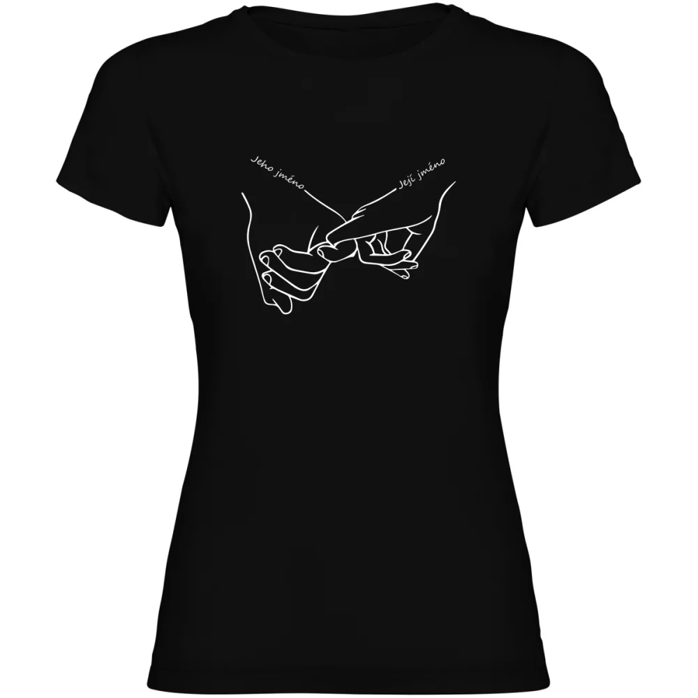 Nezapomeňte vlastní text uložit stisknutím tlačítka ULOŽIT VLASTNÍ TEXTVyjádřete svou lásku a jedinečné pouto s tímto romantickým tričkem, které zdobí motiv rukou držících se za malíček. Díky možnosti personalizace si na tričko můžete nechat přidat vaše jména a vytvořit tak originální a osobní kousek. Tričko je perfektní dárek pro nevěstu, na rozlučku se svobodou nebo jako romantické překvapení. Kvalitní DTF potisk a pohodlný střih jsou samozřejmostí. Potištěno v České republice.