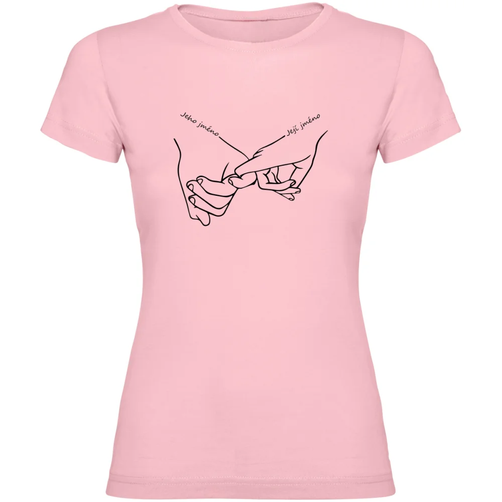 Nezapomeňte vlastní text uložit stisknutím tlačítka ULOŽIT VLASTNÍ TEXTVyjádřete svou lásku a jedinečné pouto s tímto romantickým tričkem, které zdobí motiv rukou držících se za malíček. Díky možnosti personalizace si na tričko můžete nechat přidat vaše jména a vytvořit tak originální a osobní kousek. Tričko je perfektní dárek pro nevěstu, na rozlučku se svobodou nebo jako romantické překvapení. Kvalitní DTF potisk a pohodlný střih jsou samozřejmostí. Potištěno v České republice.