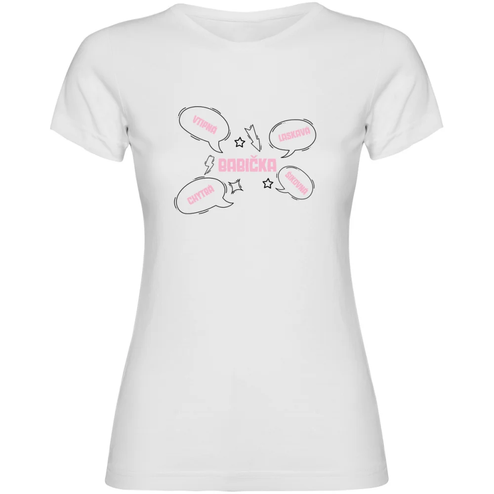 Dámské tričko „BABIČKA“ je ideální pro všechny skvělé babičky, které jsou srdcem rodiny a zdrojem nekonečné lásky a moudrosti. S jednoduchým a elegantním potiskem je perfektní na každodenní nošení i jako milý dárek k narozeninám nebo svátku. Pohodlný střih a kvalitní materiál zajistí komfort i styl v každé situaci.