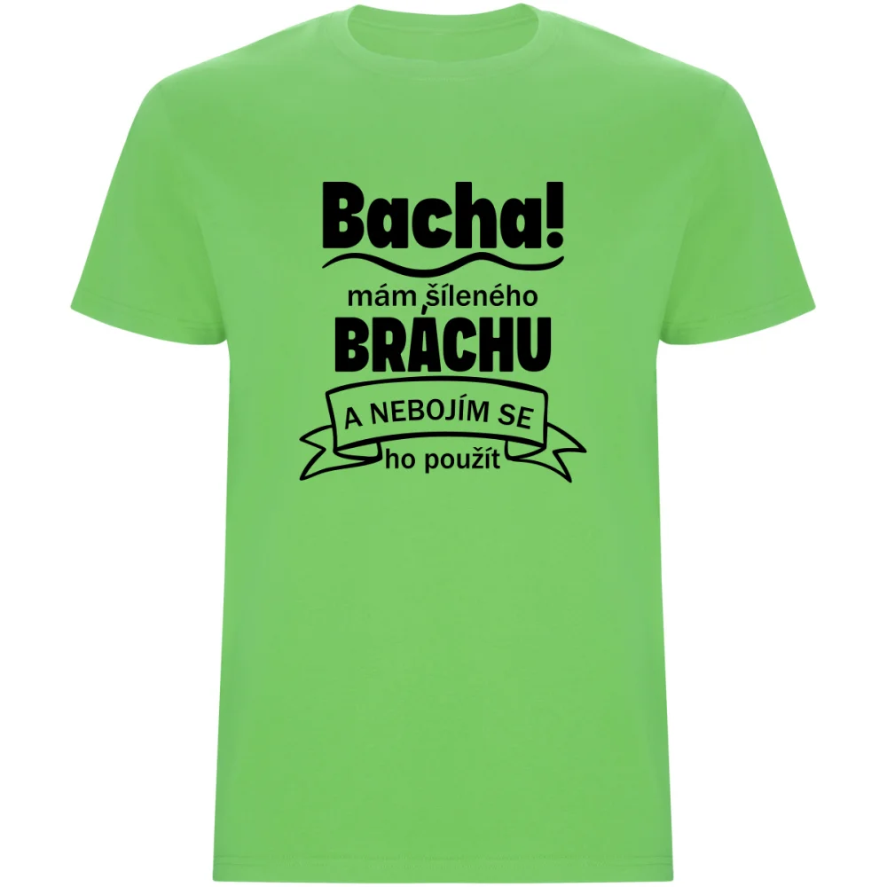 Pánské tričko „BACHA, MÁM ŠÍLENÉHO BRÁCHU“ je ideální volbou pro každého, kdo má doma pořádně akčního sourozence. Vtipný potisk dává jasně najevo, že s tebou to nikdo nemá jednoduché – protože někde v pozadí číhá tvůj šílený brácha! Stylový a pohodlný kousek, který pobaví na první pohled a hodí se jak na volný čas, tak jako originální dárek.
