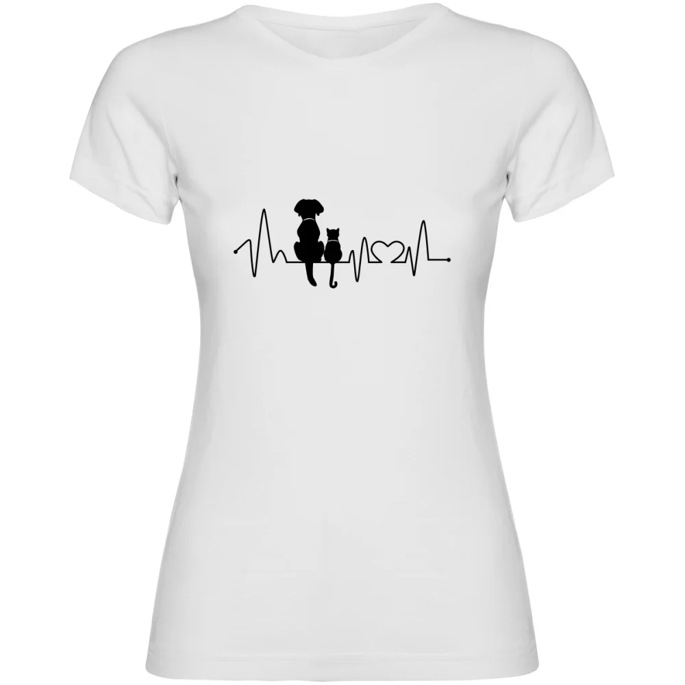 Dámské tričko – KOČKA A PES EKG je must-have pro všechny milovnice čtyřnohých přátel. Kombinace EKG křivky a siluet psa i kočky vyjadřuje silné pouto ke zvířatům – bez ohledu na to, jestli máš doma vrnící šelmu, věrného parťáka, nebo oba!