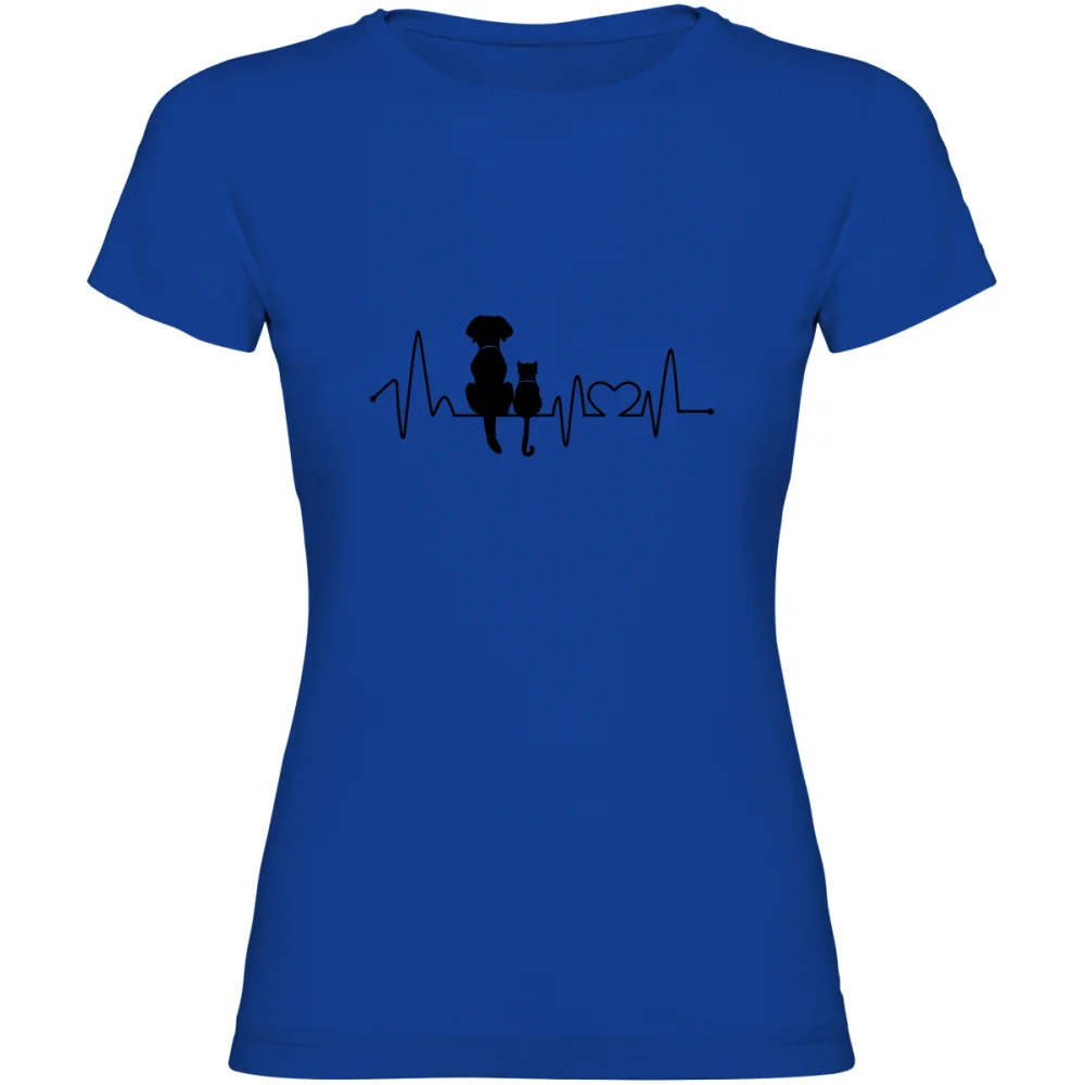 Dámské tričko – KOČKA A PES EKG je must-have pro všechny milovnice čtyřnohých přátel. Kombinace EKG křivky a siluet psa i kočky vyjadřuje silné pouto ke zvířatům – bez ohledu na to, jestli máš doma vrnící šelmu, věrného parťáka, nebo oba!