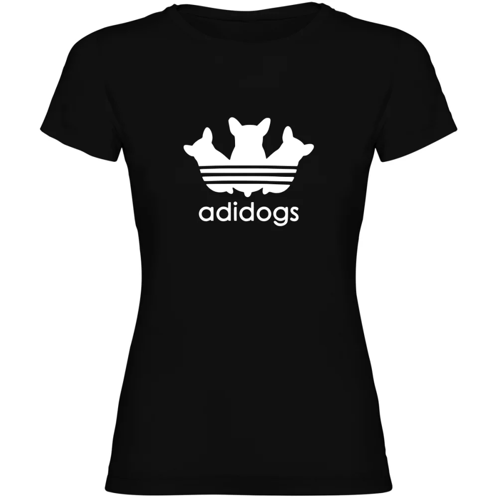 Dámské tričko – ADIDOGS je ideální volba pro každou ženu, která zbožňuje psy a zároveň má vkus. Parodie na slavnou značku dostane každou pejskařku – místo pruhů máš pejsky. Tak to má být!