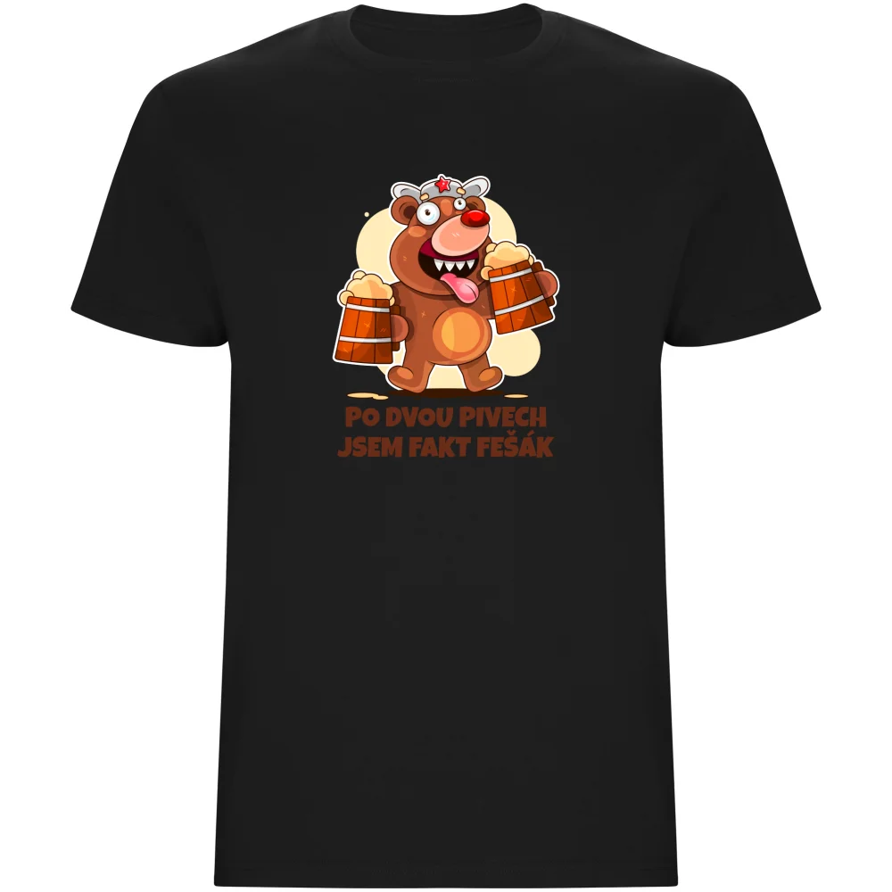 Tohle pánské tričko kombinuje skvělý humor s pohodlím a originálním designem. Potisk medvěda držícího pivo s nápisem „Po dvou pivech jsem fakt fešák“ je trefou do černého pro všechny, kdo rádi spojí srandu s relaxem.