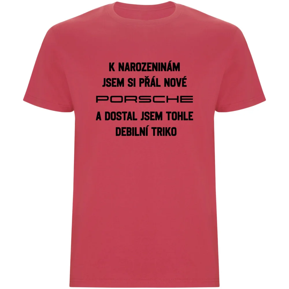 Pánské tričko s potiskem „Přál jsem si Porsche a dostal jsem tohle tričko“ je skvělou volbou pro muže, kteří si cení humoru a originálního stylu.