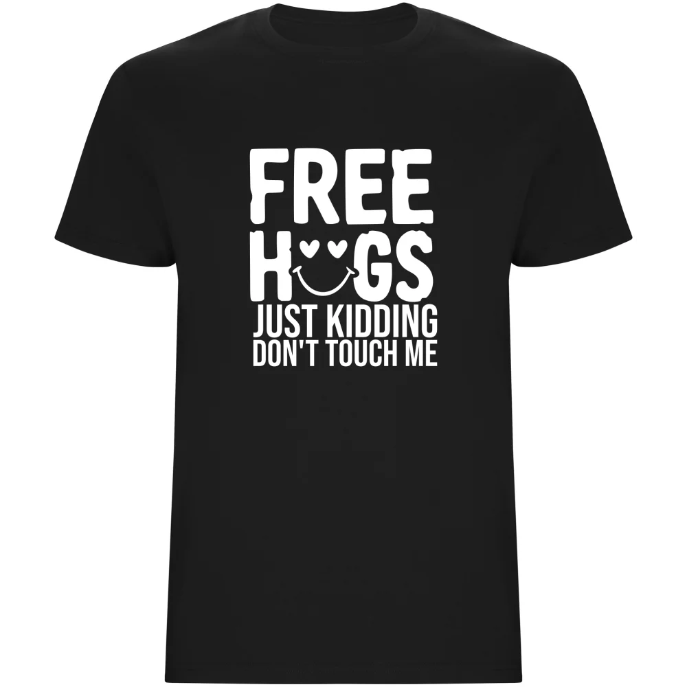 Toto pánské tričko s nápisem „FREE HUGS, just kidding, don't touch me“ je ideální pro všechny introverty, milovníky sarkasmu a ty, kteří mají rádi své objetí pouze od vybraných jedinců. Vyrobeno z kvalitní 100% bavlny pro maximální pohodlí. Potisk je odolný a drží tvar i po mnoha praních. Skvělé jako dárek nebo pro vlastní radost.