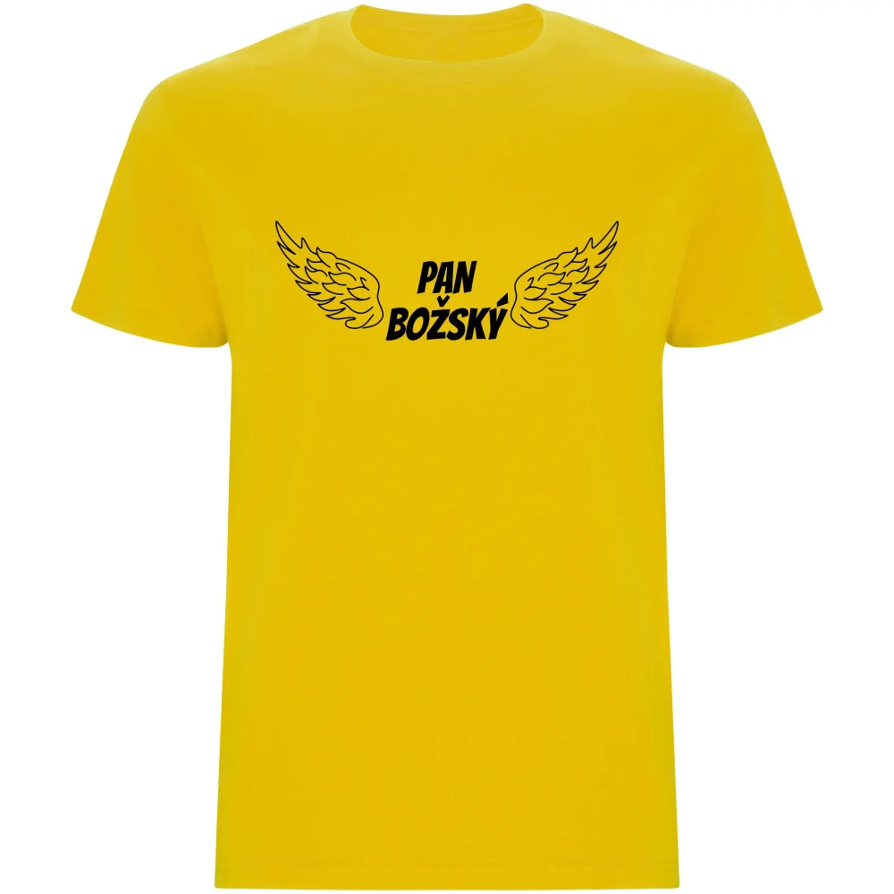 Originální pánské tričko s nápisem PAN BOŽSKÝ, které pobaví i potěší. Kvalitní potisk z polyuretanové fólie odolává praní a tričko si uchová skvělý vzhled i po dlouhodobém nošení.