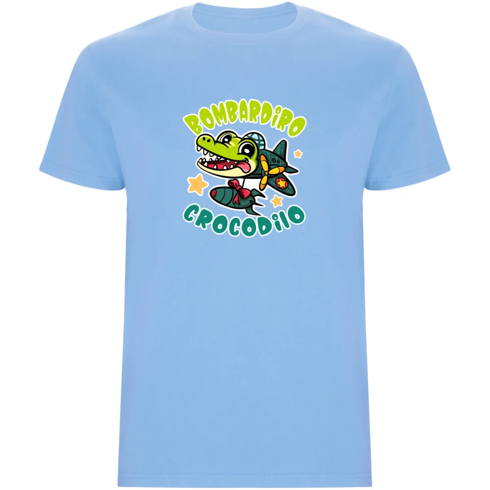 Dětské tričko Italský Brainrot Bombardino Crocodilo. Představ si krokodýla, který není v řece, ale pilotuje letadlo... zepředu... s vrtulemi... a zuby. Nedává to smysl? Přesně proto je to meme roku.