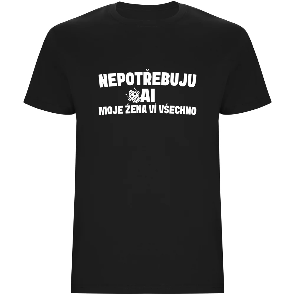 Pánské tričko - NEPOTŘEBUJU AI, MOJE ŽENA VÍ VŠECHNO
