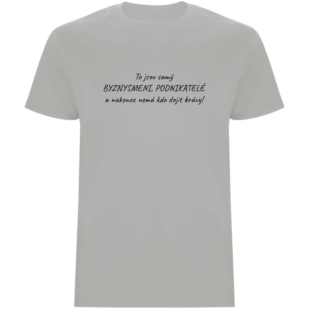 Pánské tričko s potiskem „A nakonec nemá kdo dojit krávy“ je ideální volbou pro všechny muže, kteří si rádi vystřelí a mají rádi originální český humor.