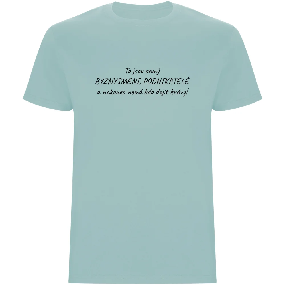 Pánské tričko s potiskem „A nakonec nemá kdo dojit krávy“ je ideální volbou pro všechny muže, kteří si rádi vystřelí a mají rádi originální český humor.