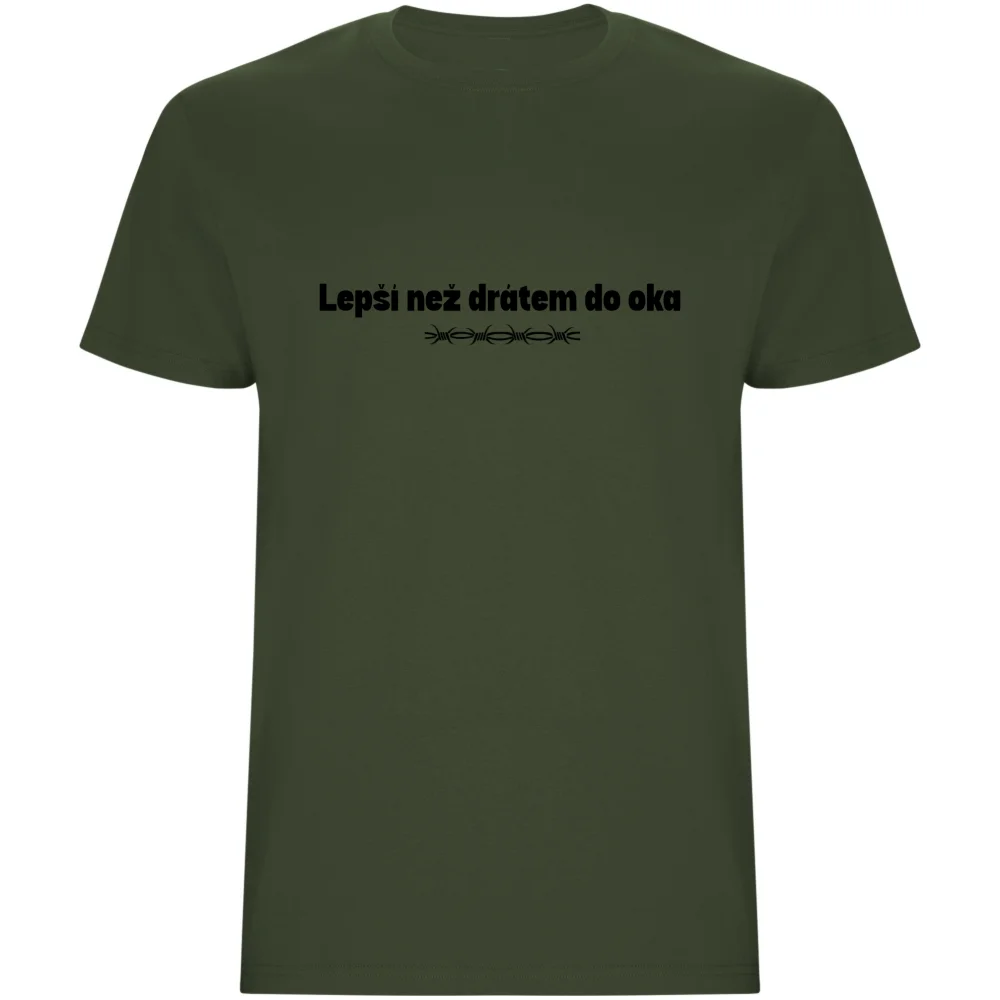 Pánské tričko s potiskem „Lepší než drátem do oka“ je ideální pro muže, kteří si cení českého humoru a originálních nápisů.
