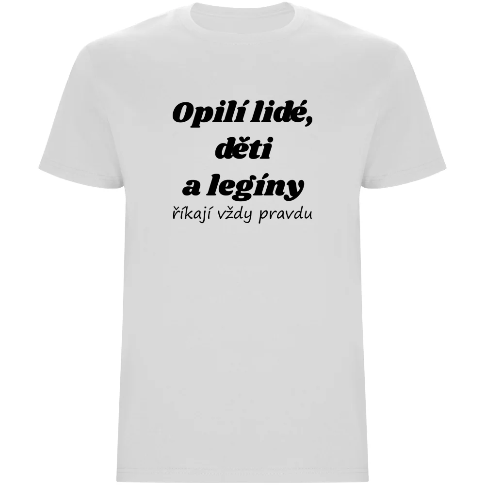 Pánské tričko s potiskem „Opilí lidé, děti a legíny říkají vždy pravdu“ je ideálním kouskem pro všechny, kteří oceňují upřímnost a humor s trochou sarkasmu.