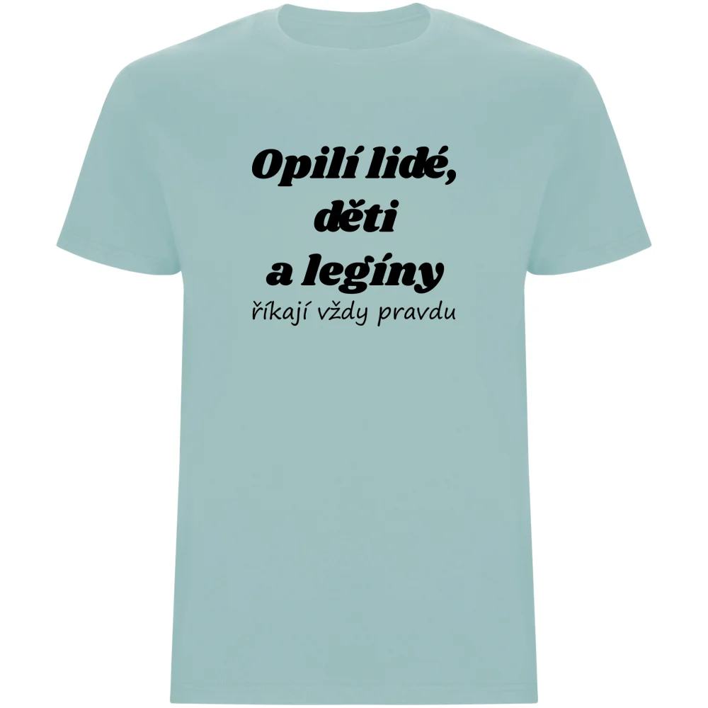 Pánské tričko s potiskem „Opilí lidé, děti a legíny říkají vždy pravdu“ je ideálním kouskem pro všechny, kteří oceňují upřímnost a humor s trochou sarkasmu.