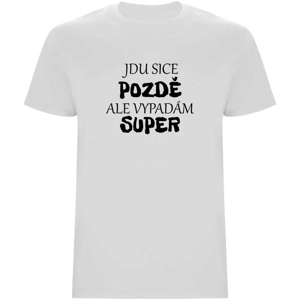 Pánské tričko s potiskem „Jdu sice pozdě, ale vypadám super“ je perfektní kousek pro každého muže, který bere život s nadhledem a humorem.