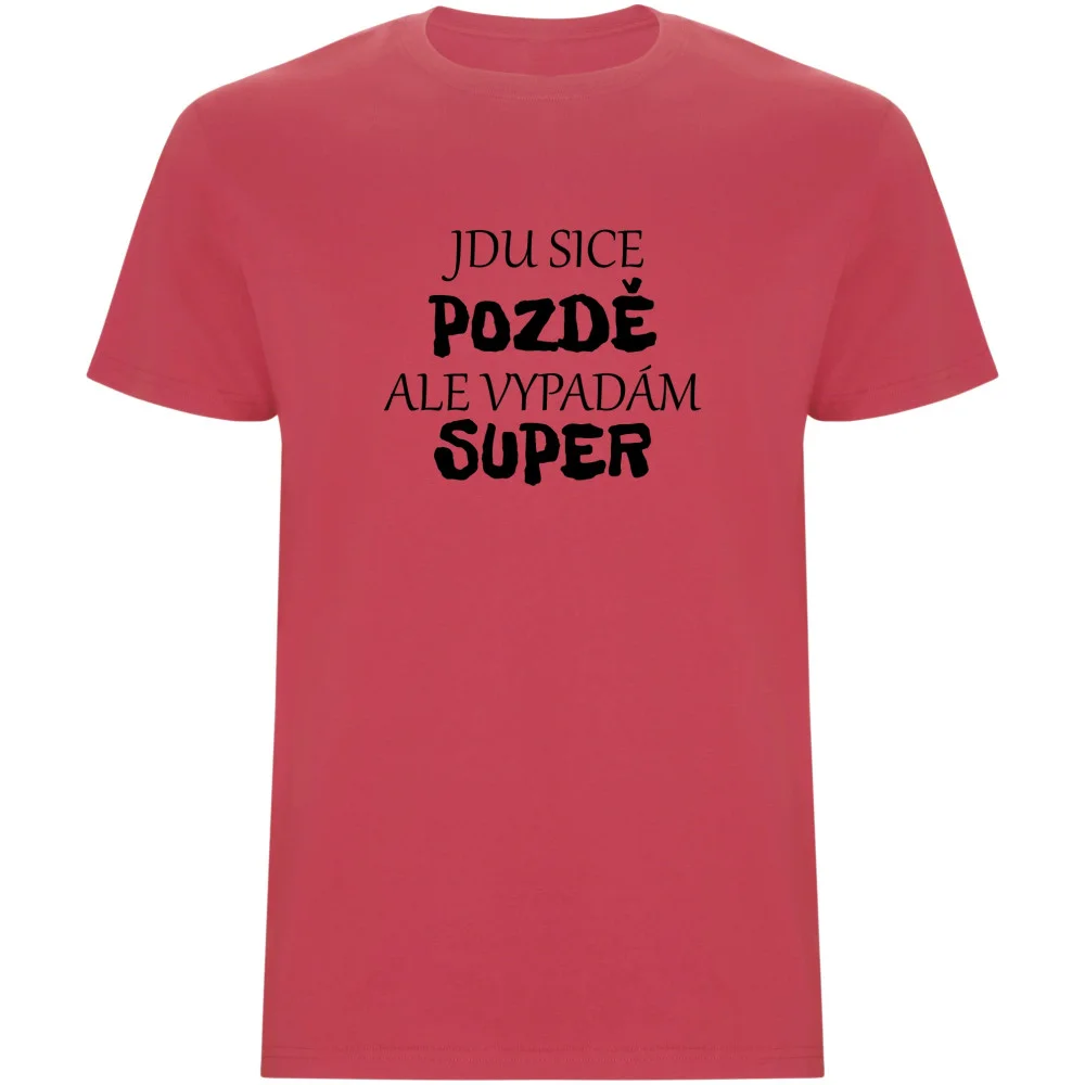 Pánské tričko s potiskem „Jdu sice pozdě, ale vypadám super“ je perfektní kousek pro každého muže, který bere život s nadhledem a humorem.