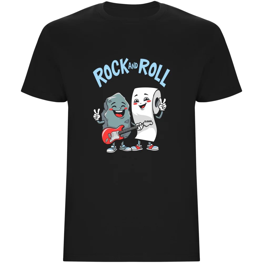 Rockuješ s humorem? Tohle tričko s parodickým potiskem "ROCK AND ROLL" ti sedne! Kámen hraje na kytaru a rulička to rozjíždí. Pro každého, kdo miluje vtip a originalitu.