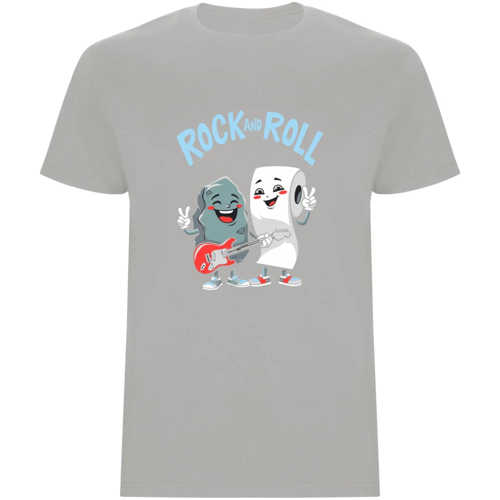 Rockuješ s humorem? Tohle tričko s parodickým potiskem "ROCK AND ROLL" ti sedne! Kámen hraje na kytaru a rulička to rozjíždí. Pro každého, kdo miluje vtip a originalitu.