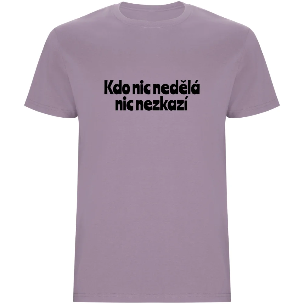 Pánské tričko „KDO NIC NEDĚLÁ, NIC NEZKAZÍ“ je stylový způsob, jak přiznat lenost a ještě si za to vysloužit uznání. Klasická česká hláška, která pobaví, ale zároveň v sobě skrývá hlubokou pravdu (nebo aspoň výmluvu).