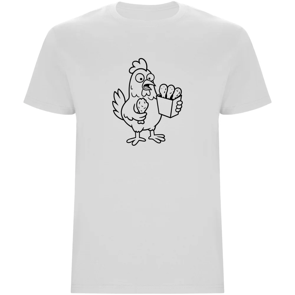 Pánské tričko s originálním potiskem kuřete, které žere kuřecí křídla. Pro všechny, kdo mají rádi černý humor a nebojí se vybočit z řady. Pohodlné, kvalitní a neotřelé.