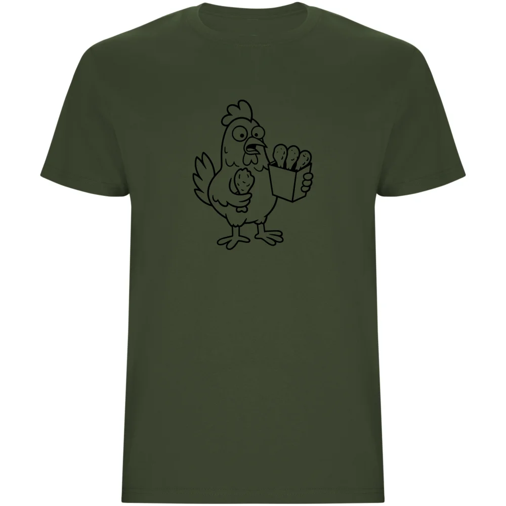 Pánské tričko s originálním potiskem kuřete, které žere kuřecí křídla. Pro všechny, kdo mají rádi černý humor a nebojí se vybočit z řady. Pohodlné, kvalitní a neotřelé.