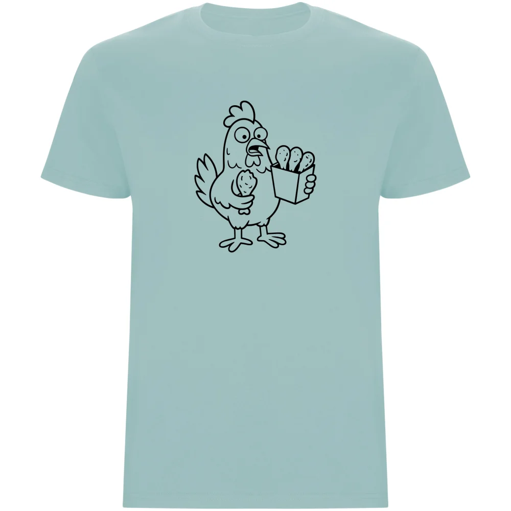Pánské tričko s originálním potiskem kuřete, které žere kuřecí křídla. Pro všechny, kdo mají rádi černý humor a nebojí se vybočit z řady. Pohodlné, kvalitní a neotřelé.