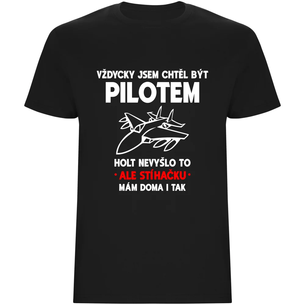 Originální pánské tričko s nápisem „VŽDYCKY JSEM CHTĚL BÝT PILOTEM… HOLT NEVYŠLO TO, ALE STÍHAČKU MÁM DOMA I TAK“ pobaví každého chlapa s nadhledem. Potisk je vyroben z kvalitní polyuretanové fólie – pružný, odolný vůči praní a s dlouhou životností. Pohodlný střih zaručuje komfort při každodenním nošení i jako dárek pro partnery s humorem.