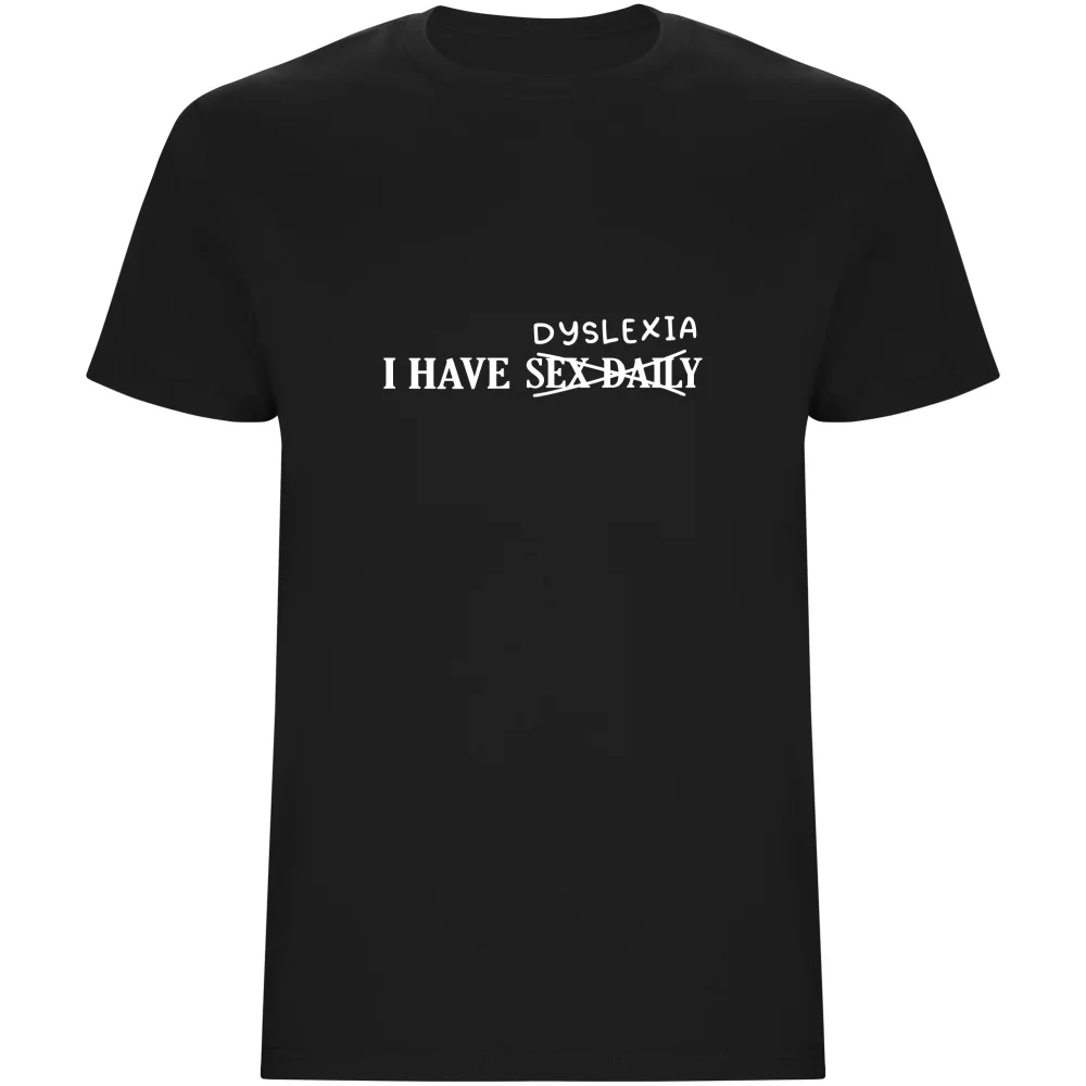 Vtipné pánské tričko s nápisem I HAVE SEX DAILY (s přeškrtnutým „SEX DAILY“ a dopsaným „DYSLEXIA“) pobaví každého s dobrým smyslem pro humor. Kvalitní potisk z polyuretanové fólie odolá častému praní a tričko si zachová svůj perfektní vzhled dlouhou dobu. Pohodlný střih zaručí komfortní nošení na každé akci, party nebo jen tak mezi přáteli. Ideální dárek, který zaručeně vyvolá úsměv.