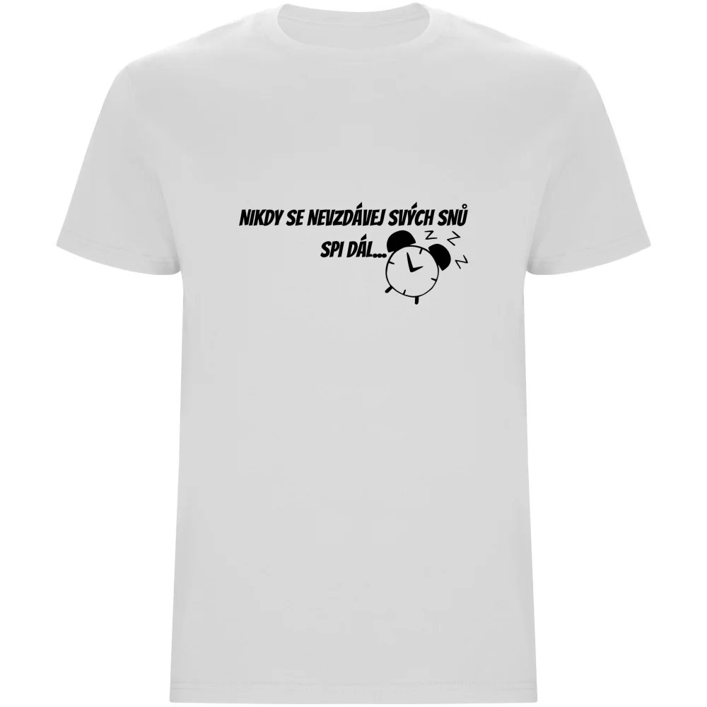 Pánské tričko s nápisem „Nikdy se nevzdávej svých snů, spi dál“ pobaví každého s citem pro humor. Vyrobené z kvalitního materiálu s odolným potiskem, který vydrží i časté praní. Skvělý tip na originální a vtipný dárek pro kamaráda, bratra nebo kolegu.