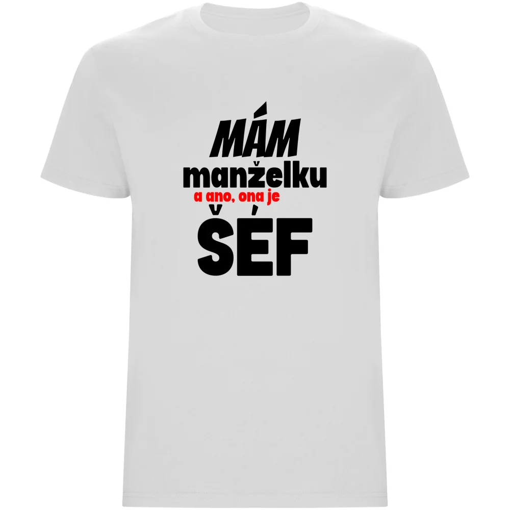 Pánské tričko s nápisem „Mám manželku, a ano, ona je šéf“ je trefný a vtipný kousek do šatníku každého ženatého muže. Vyrobeno z pohodlného a kvalitního materiálu s odolným potiskem, který vydrží. Perfektní jako originální dárek pro manžela, kamaráda nebo kolegu – zaručeně pobaví.